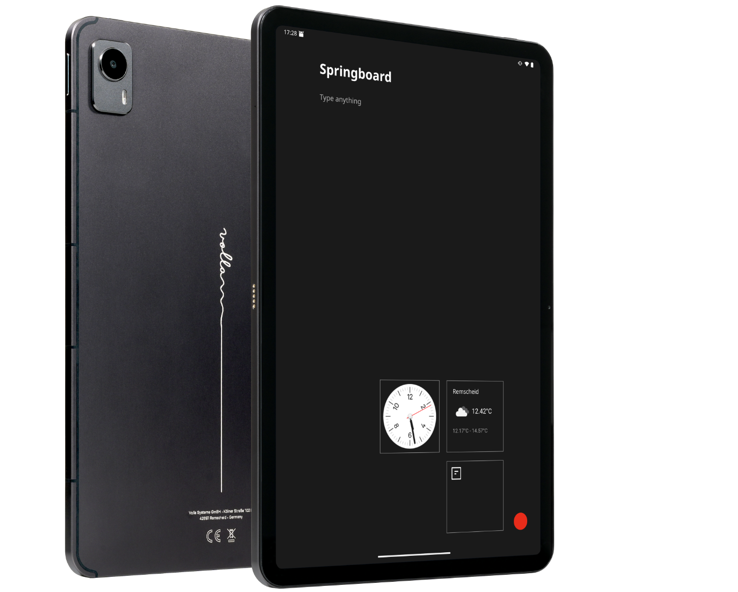 Volla Tablet er utstyrt med magnetisk pogo-pin. Tilkobl Volla Keyboard, og kombinert med en 12,6 tommer stor skjerm, Volla Pen Tiro (USI 2.0 Standard, dvs. elektromagnetisk) og Ubuntu Touch, så går du sømløst fra nettlesing til kreativitet og produktivitet. Hva enten du skriver et utkast til en melding, skisserer en idé eller jobber på farten, forvandler tastaturet pg pennen nettbrettet til et fokusert arbeidsområde: stille, responsivt og klart når du er det.